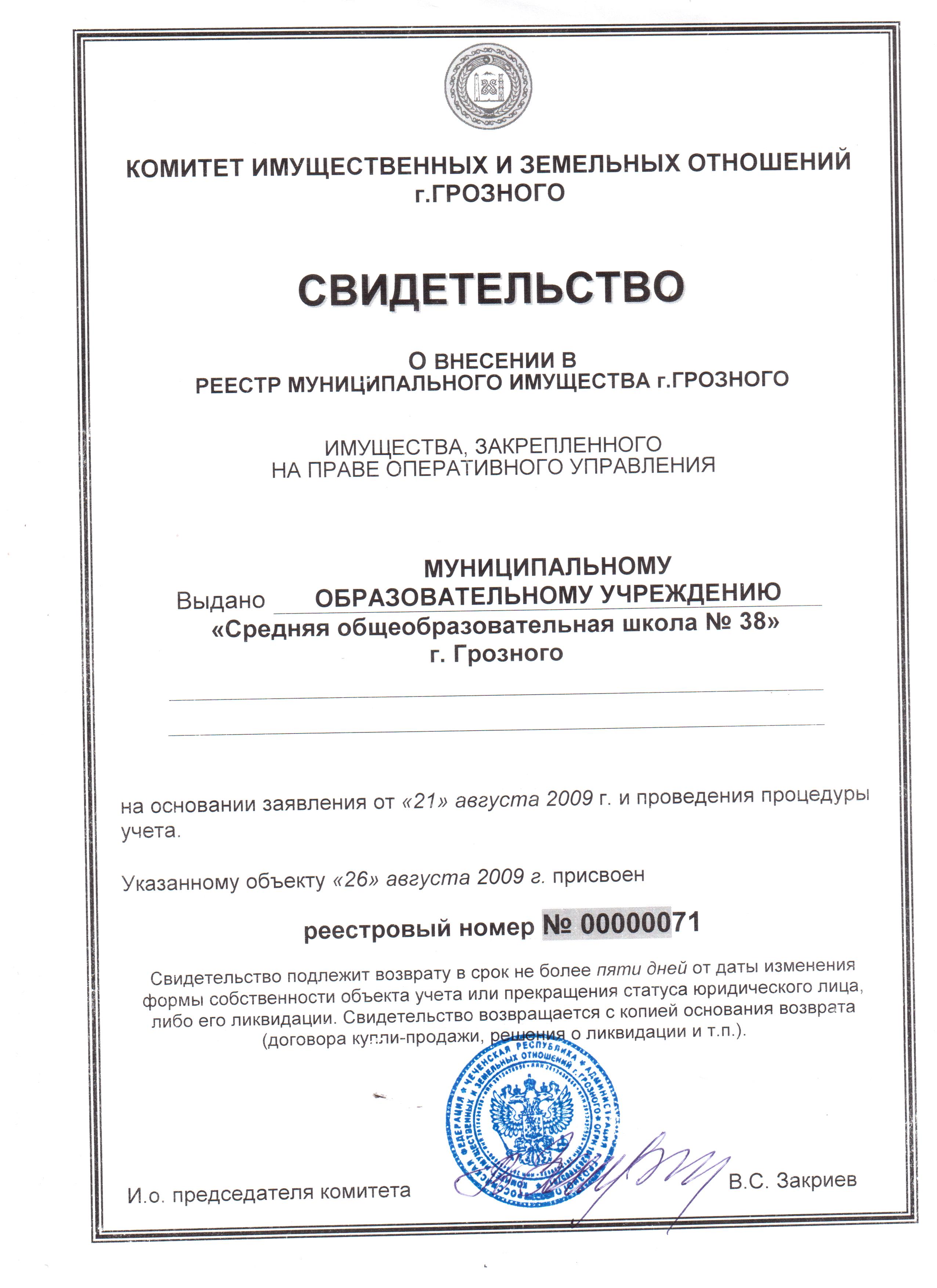 приема на обучение в МБОУ «СОШ № 38» г. Грозного