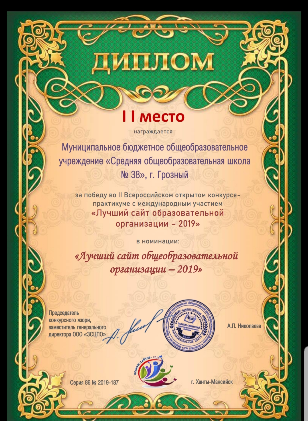 Муниципальное бюджетное общеобразовательное учреждение "Средняя общеобразовательная школа №38" г.Грозного