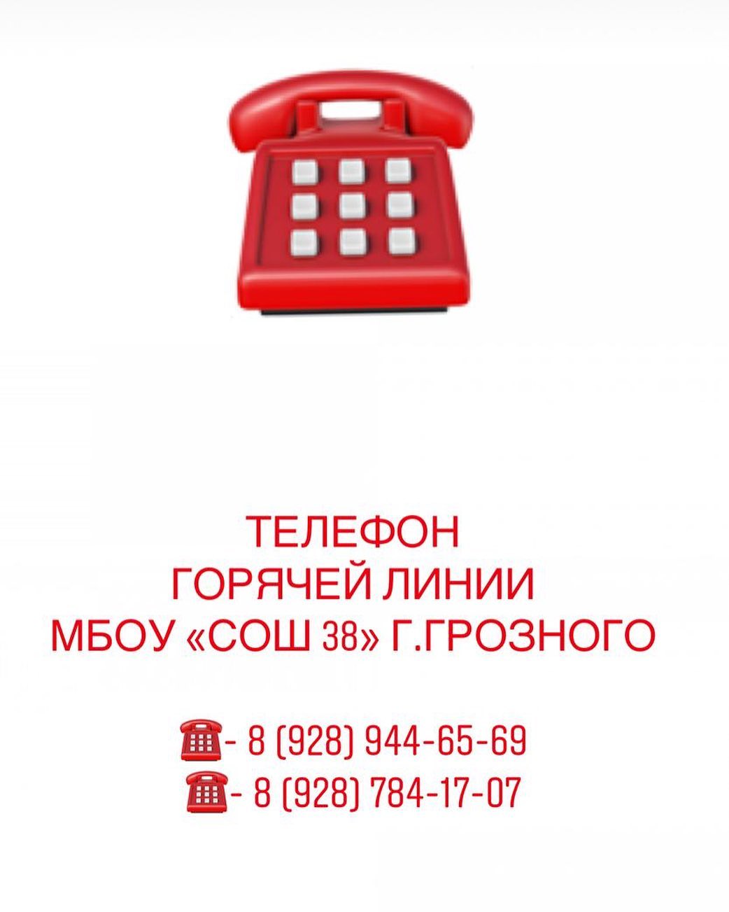 06.04.2020Горячая линия МБОУ "СОШ#38" г.Грозного для обращений граждан по вопросам реализации образовательных программ с использованием дистанционных образовательных технологий. На ваши вопросы готовы ответить.