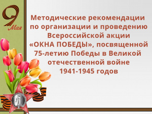Данные методические рекомендации определяют подход к проведению Всероссийской акции «Окна Победы», посвящённой 75-летию Победы в Великой Отечественной войне 1941-1945 года (далее - Акция).