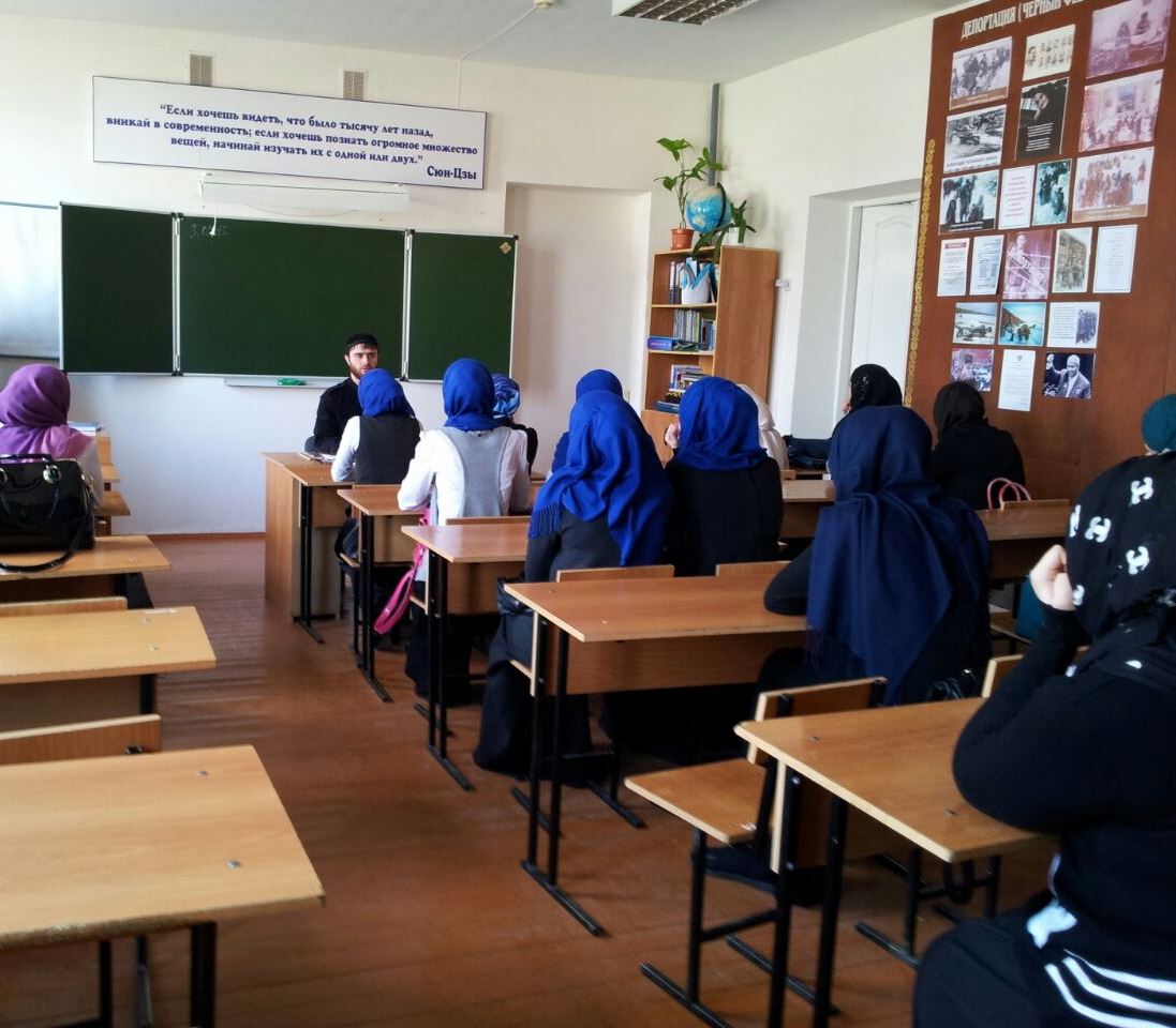 Беседа: Ношение хиджаба", провел Саидов М. Беседа, была проведена с девушками, которые носят хиджаб. Об обязанности соответствия внешнему виду и о запрете употребления экстремистского характера во внешнем виде.