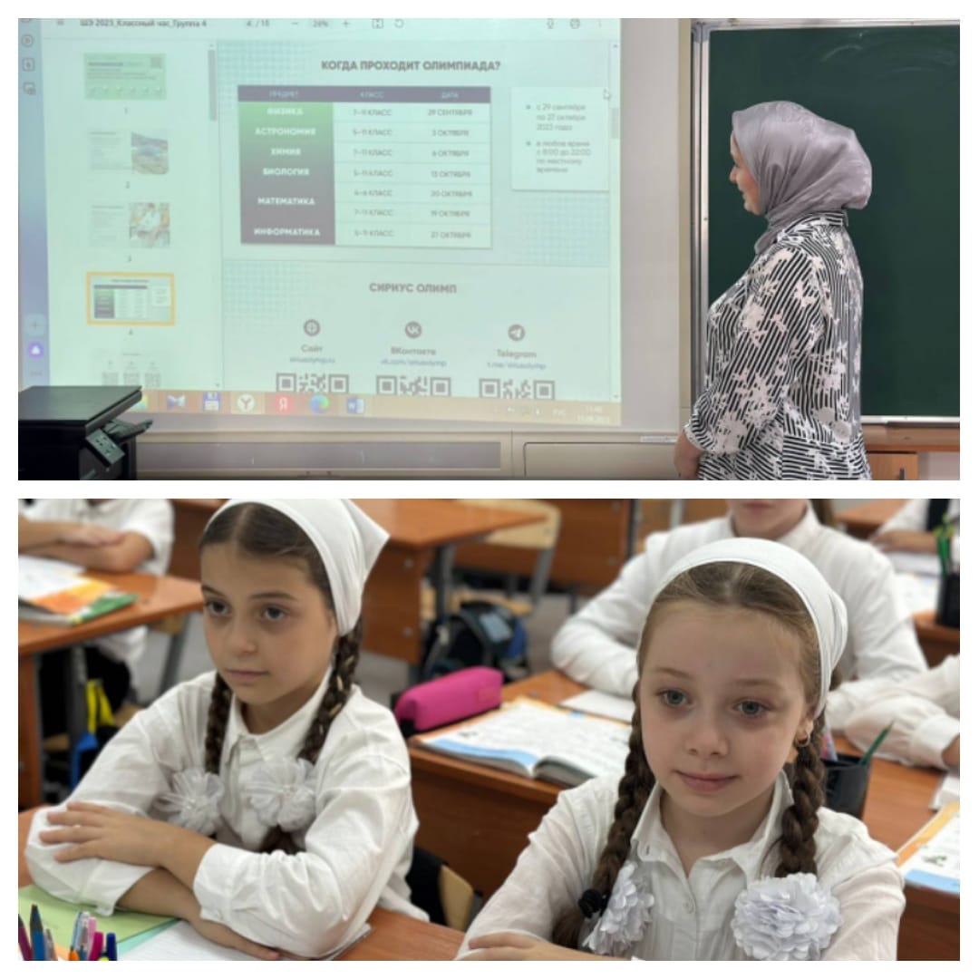 19.09.2023В МБОУ «СОШ 38» г. Грозного в преддверии олимпиадного движения школьников прошли классные часы «Встречаем олимпиаду», с целью повышения мотивации, интереса и вовлечения обучающихся.