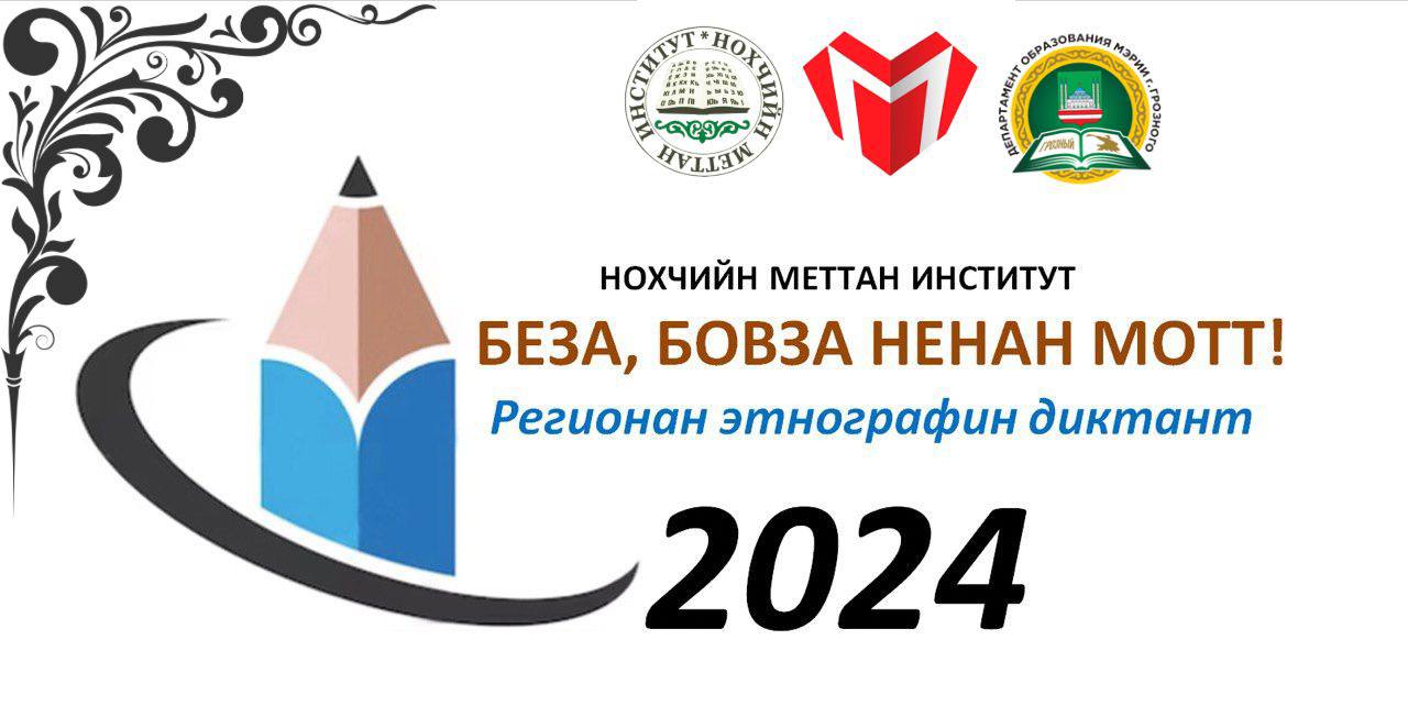 16.02.2024Региональный этнографический диктант «Беза, бовза ненан мотт!» состоится 16 февраля в Грозном в честь Международного дня родного языка. Мероприятие пройдет в Гимназии № 5 города Грозного. Эта образовательная инициатива направлена на популяризацию изучения чеченского языка, литературы, истории и этнографии. Диктант дает уникальная возможность участникам углубить свои знания, улучшить письменную речь и общую грамотность. Участие открыто для всех граждан Российской Федерации старше 14 лет, независимо от образования, профессии, социального статуса и религиозных взглядов. Присоединяйтесь к этому важному событию и внесите свой вклад в сохранение и развитие чеченского языка.