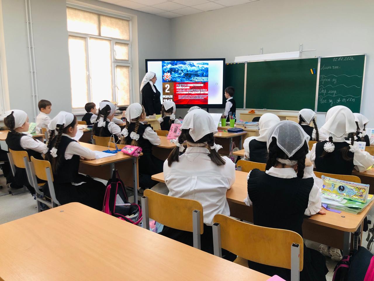 16.02.2024В целях реализации федерального проекта «Патриотическое воспитание граждан РФ», действующего в рамках нацпроекта «Образование», который инициирован Президентом страны Владимиром Путиным, в Грозном состоялось региональное мероприятие «Защитники Родины» с участием учеников столичных ОУ, посвященное Второй Мировой войне. Здесь присутствовали и обучающиеся начальных классов МБОУ «СОШ №38» г. Грозного.