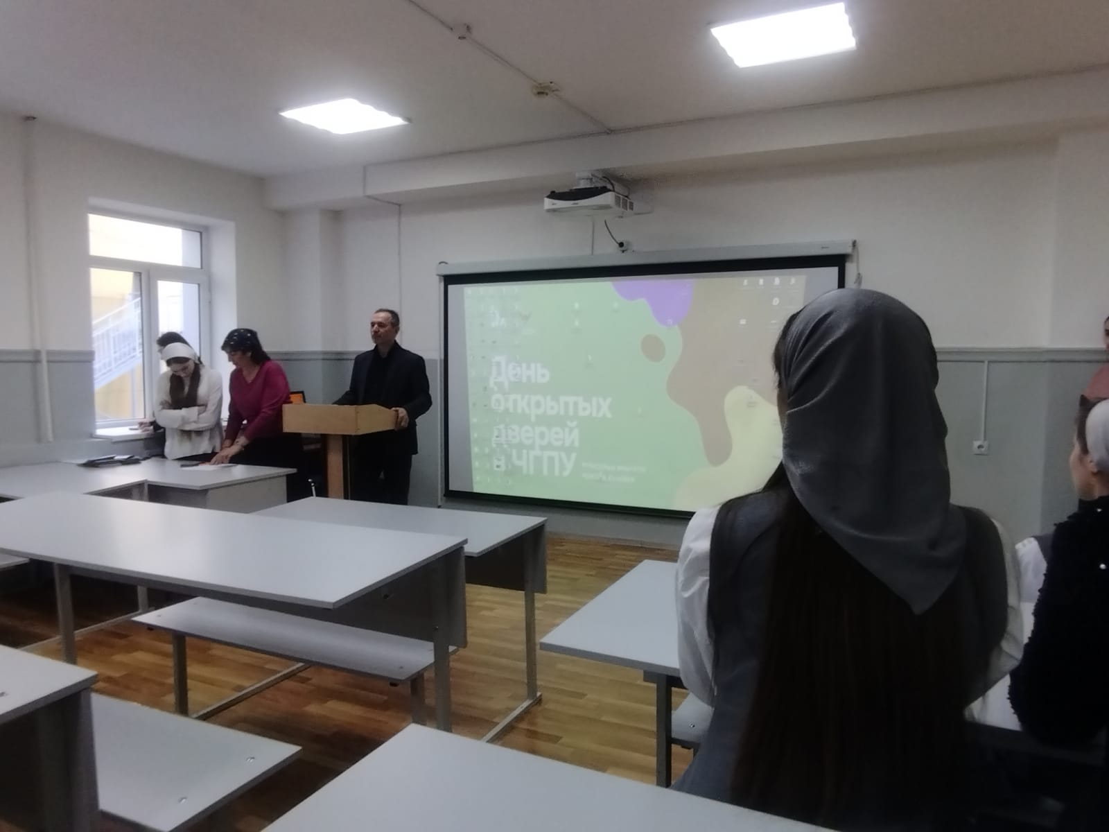 День открытых дверей провела выпускница МБОУ «СОШ №38» г.Грозного Синиева Сабина, которая является руководителем университетского проекта «Твоя профессиональная карьера», волонтером и студенткой данного вуза. Проект «Твоя профессиональная карьера» помогает детям анализировать рынок профессий и определиться с высшим учебным заведением. В рамках профориентации она разработала маршруты «школа – ВУЗ», и группы учащихся параллели 9-ых классов имели возможность посетить институты и колледжи города Грозный. Экскурсии проходят по различным специальностям, направления ученики выбирали сами, заполняя анкету. Сотрудники университета рассказали о различных направлениях обучения в институтах и о том, как правильно выбрать профессию. Они подчеркнули, что важно выбирать профессию, которая соответствует интересам и способностям человека, а также имеет хорошие перспективы на рынке труда.