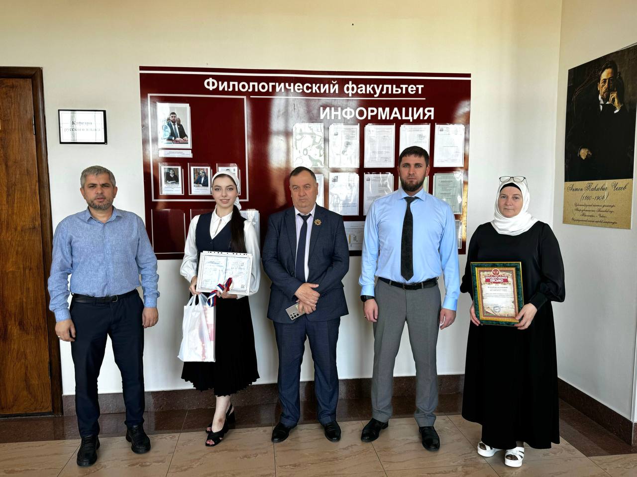 Кроме того, за популяризацию чеченского языка, профессионализм и высокую подготовку школьников благодарственным письмом отметили учителя чеченского языка и литературы Гимназии № 5 города Грозного Исакову Бирлант Нардиновну.