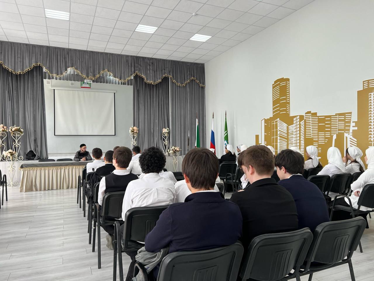 27.04.2025В МБОУ «СОШ № 38» г. Грозного прошла беседа с обучающимися в рамках реализации Единой Концепции духовно-нравственного воспитания и развития подрастающего поколения ЧР (по совместному плану с Департаментом по взаимодействию с религиозными, общественными организациями Администрации Главы и Правительства ЧР).