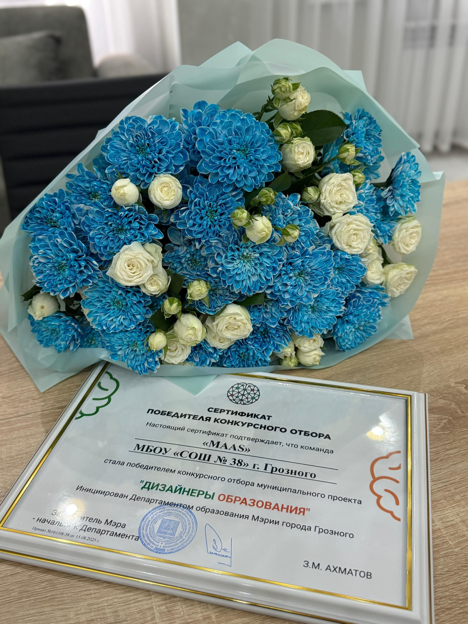 21.08.2025С гордостью сообщаем, что команда «MAAS» из МБОУ «СОШ № 38» успешно прошла в основной этап муниципального проекта «Дизайнеры образования»!На торжественном награждении, которое прошло в актовом зале Департамента образования, заместитель Мэра и начальник Департамента образования Мэрии Грозного Зелимхан Ахматов поздравил все команды-участники и подчеркнул важность этого проекта для развития образовательной системы столицы. Он отметил, что «Дизайнеры образования» отвечает современным вызовам и способствует обновлению методов обучения.После приветственного слова были объявлены победители, и команда «MAAS» была среди лучших! Мы получили сертификаты и цветы, что подтверждает нашу работу и усилия.Команда «MAAS» продолжит участвовать в программе повышения квалификации, включающей вебинары, лекции экспертов и мастермайнды, до мая 2026 года. Это отличная возможность для нашего роста и развития!Поздравляем всех участников и желаем успешного продолжения пути в проекте!
