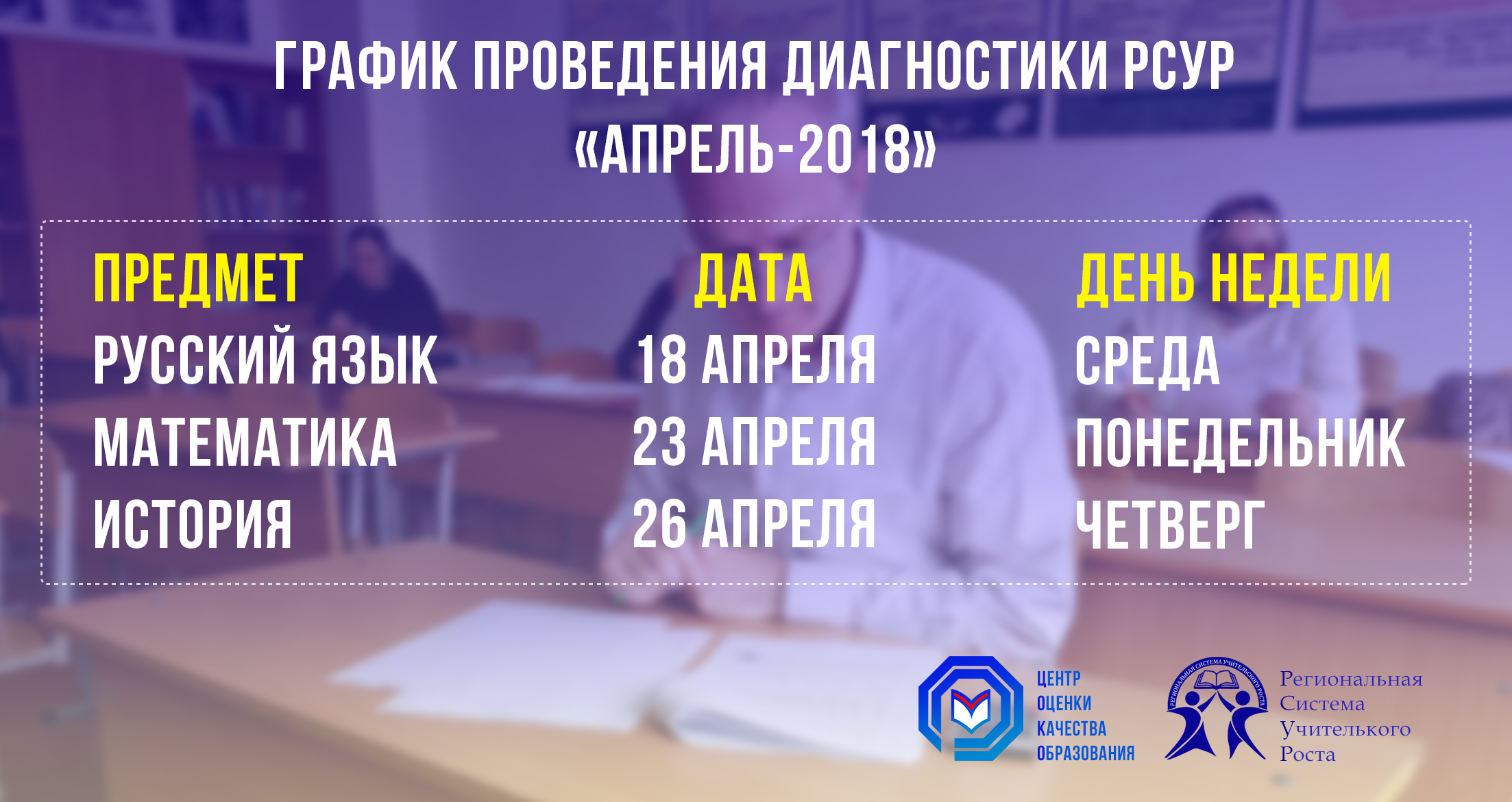 График проведения диагностических работ «Апрель-2018» в рамках реализации проекта «РСУР»